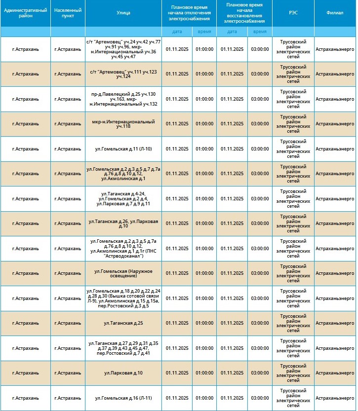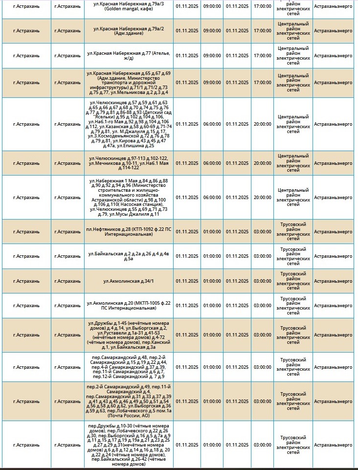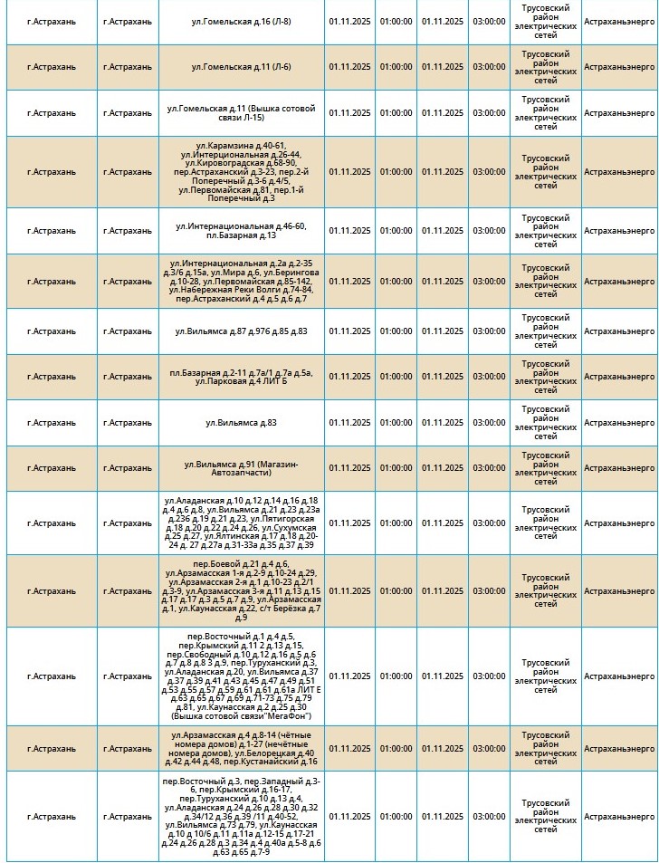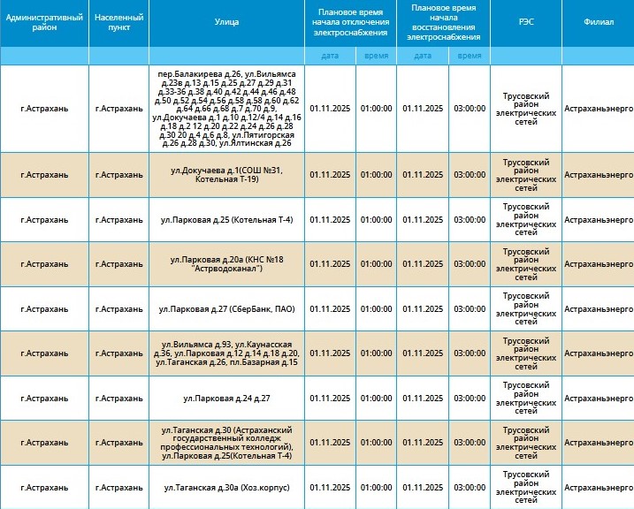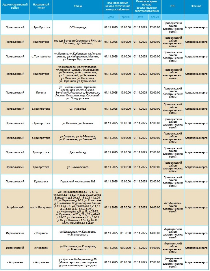 Массовые перебои в электроснабжении продолжатся и в первый ноябрьских день. 1 ноября отключение света грядет в ряде населенных пунктов Астраханской области. Расскажем, какие из них на этот раз попали в число «счастливчиков».