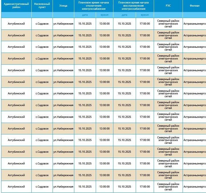 15 октября массовое отключение света грядет в Астрахани и трех районах области