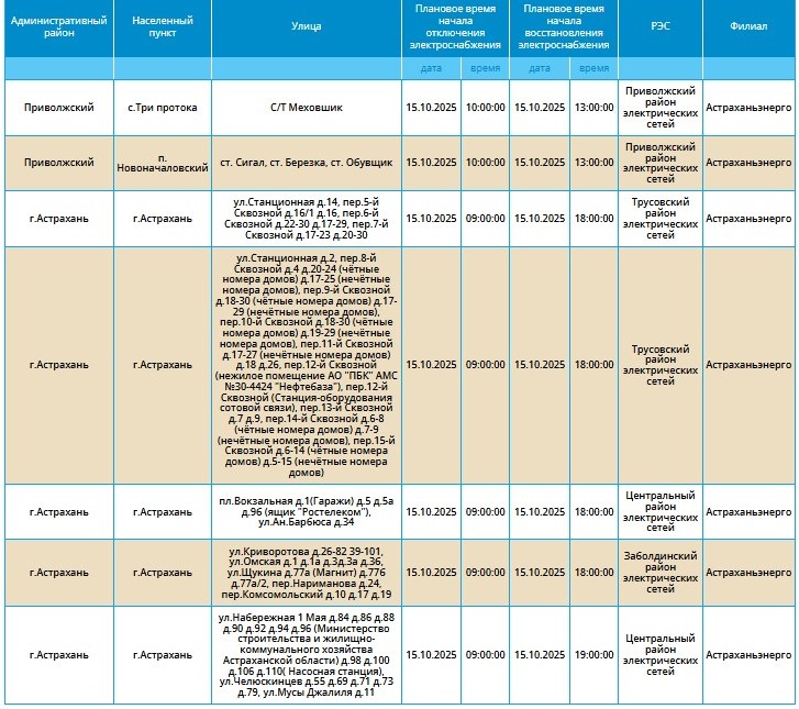 Массовые перебои в электроснабжении продолжатся и в среду.15 октября отключение света коснется ряда населенных пунктов Астраханской области. Astrakhanpost.ru выяснил, какие из них вошли в число «счастливчиков».