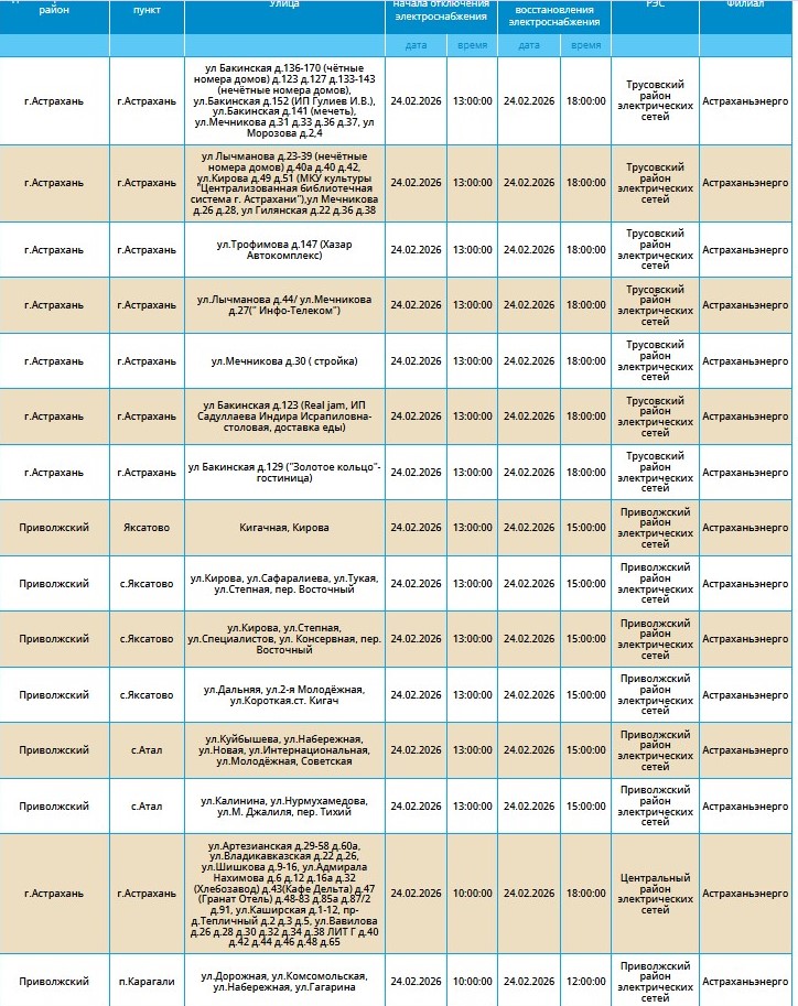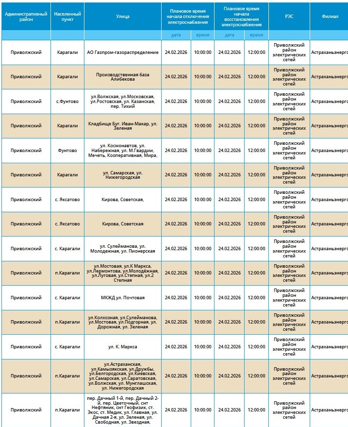 Массовые перебои в электроснабжении продолжатся и во вторник. 24 февраля отключат свет в ряде населенных пунктов Астраханской области.
