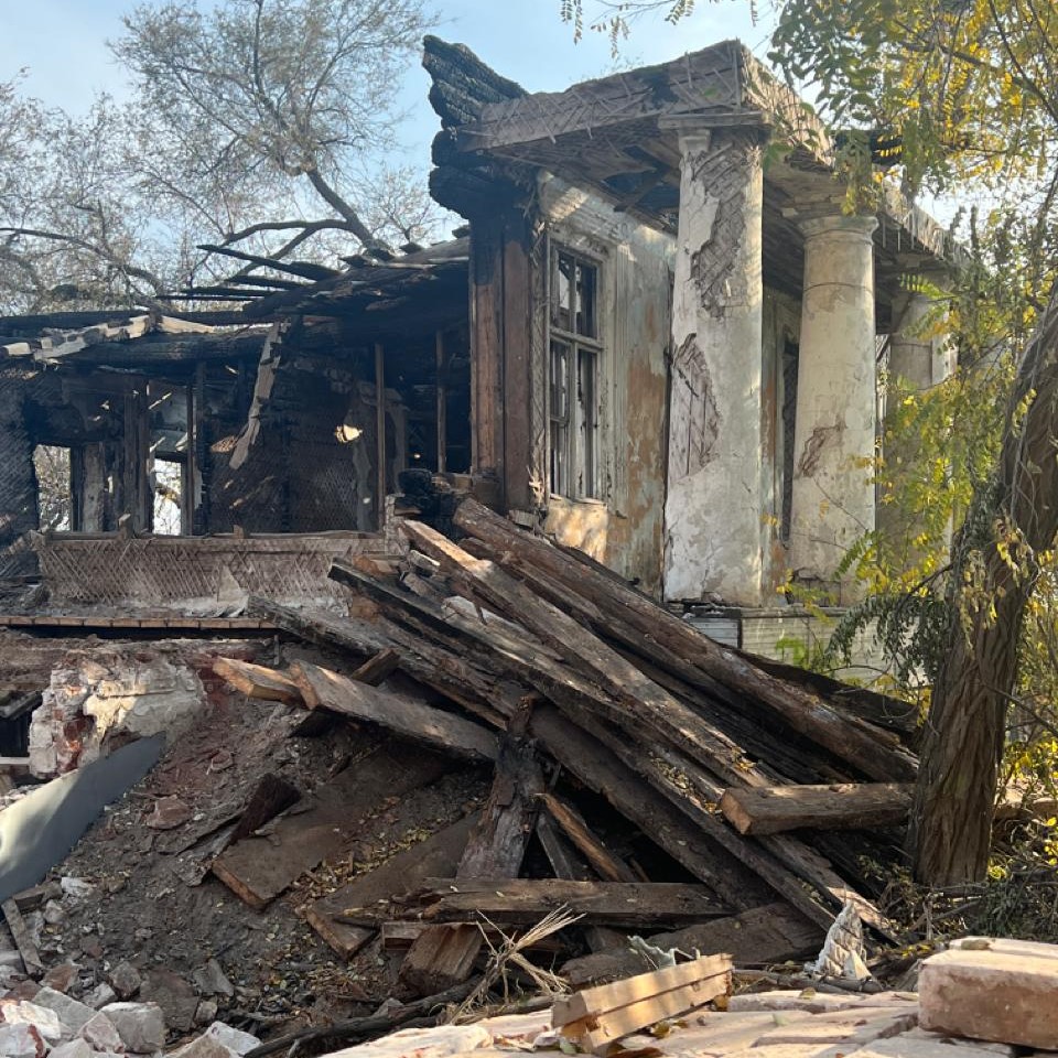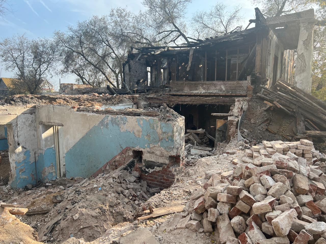 3 ноября 2023 года на объекте появились рабочие, которые стали разбирать кирпичную кладку и демонтировать деревянные конструкции. В отсутствии каких-то разрешительных документов. Зато с инструментами и техникой.
