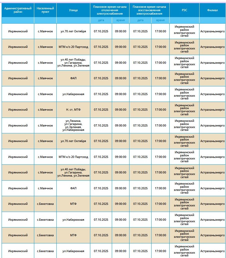 Массовые перебои в электроснабжении продолжатся и во вторник. 7 октября отключат свет в ряде населенных пунктов Астраханской области. Портал astrakhanpost.ru выяснил, какие из них вошли в число «счастливчиков».