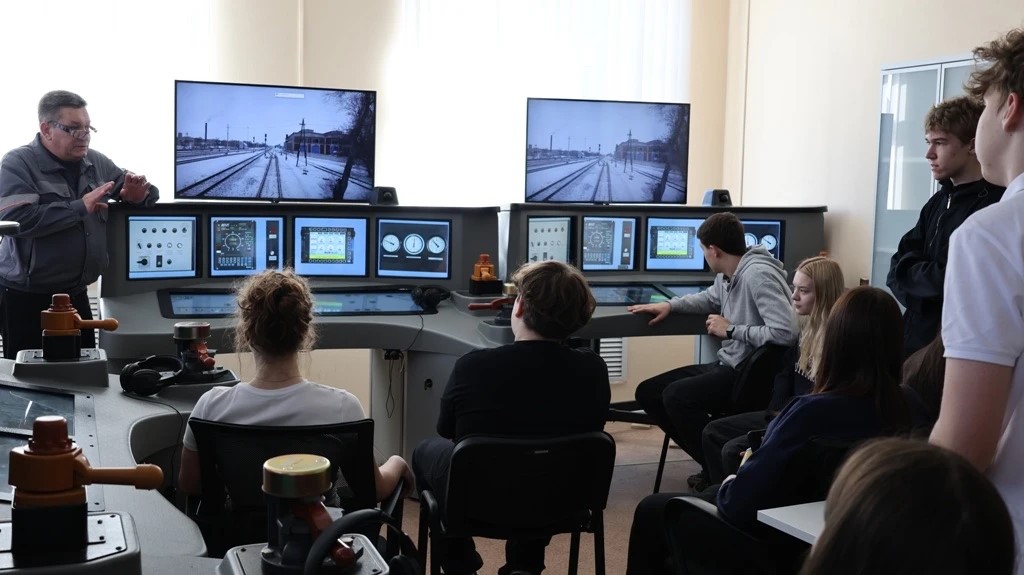 Преподаватели рассказали школьникам о профессиях «осмотрщик вагонов», «монтёр пути», «оператор сортировочной горки» и «помощник машиниста тепловоза», а также показали учебные классы, где проходят теоретические и практические занятия. На специальных тренажёрах все желающие могли попробовать себя в роли машинистов виртуальных поездов и операторов сортировочной горки.