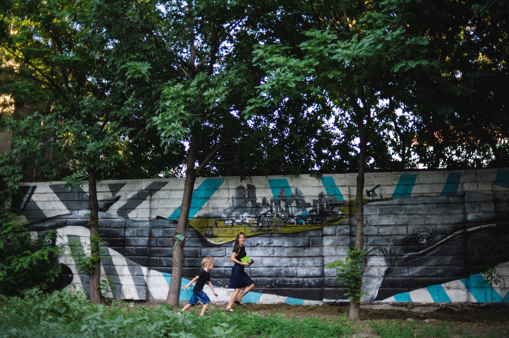 Именно здесь началась история уличного искусства в Астрахани. За несколько месяцев до росписи стен, в этом сквере было проведено благоустройство, а кирпичную стену, которая несколько веков в отвратительном состоянии скрывалась за деревьями, было решено отдать художникам. Питерский художник Стас Багс решил на стене изобразить трех китов, на которых держится современный мир. А поскольку сквер «Нефтяник», то в рисунки внедрили отраслевую тематику. Рядом с китами нанесли банки из-под топлива. |