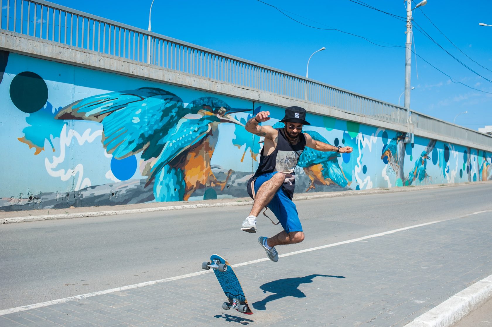Долго время откосы Нового моста были в заброшенном состоянии. Спустя почти тридцатилетнюю свою историю на нем появилась роспись. Сначала художники нарисовали здесь зайчиков и большую морковку, символизирующую один из самых длинных мостов в Европе. Когда Театр оперы и балета готовился впервые распахнуть свои двери, возникала необходимость обновления откосов. Тогда астраханские художники предложили заменить зайцев на птиц. Практически неделя потребовалась Александру Садовникову и Денису Sold, чтобы расписать 218 кв.м. |
