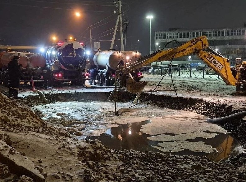 Как пояснили в администрации города, рабочие проводят ремонт на сети, находящейся под давлением. При этом вода продолжает поступать в разрытый котлован и ее постоянно приходится откачивать. В настоящий момент на базе предприятия завершается изготовление ремонтного хомута. Его планируют установить на поврежденный участок трубы.