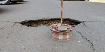 Очередной провал асфальта в Астрахани. На этот раз портал в подземелье появился на улице Луконина, и довольно глубокий. Яма «поселилась»