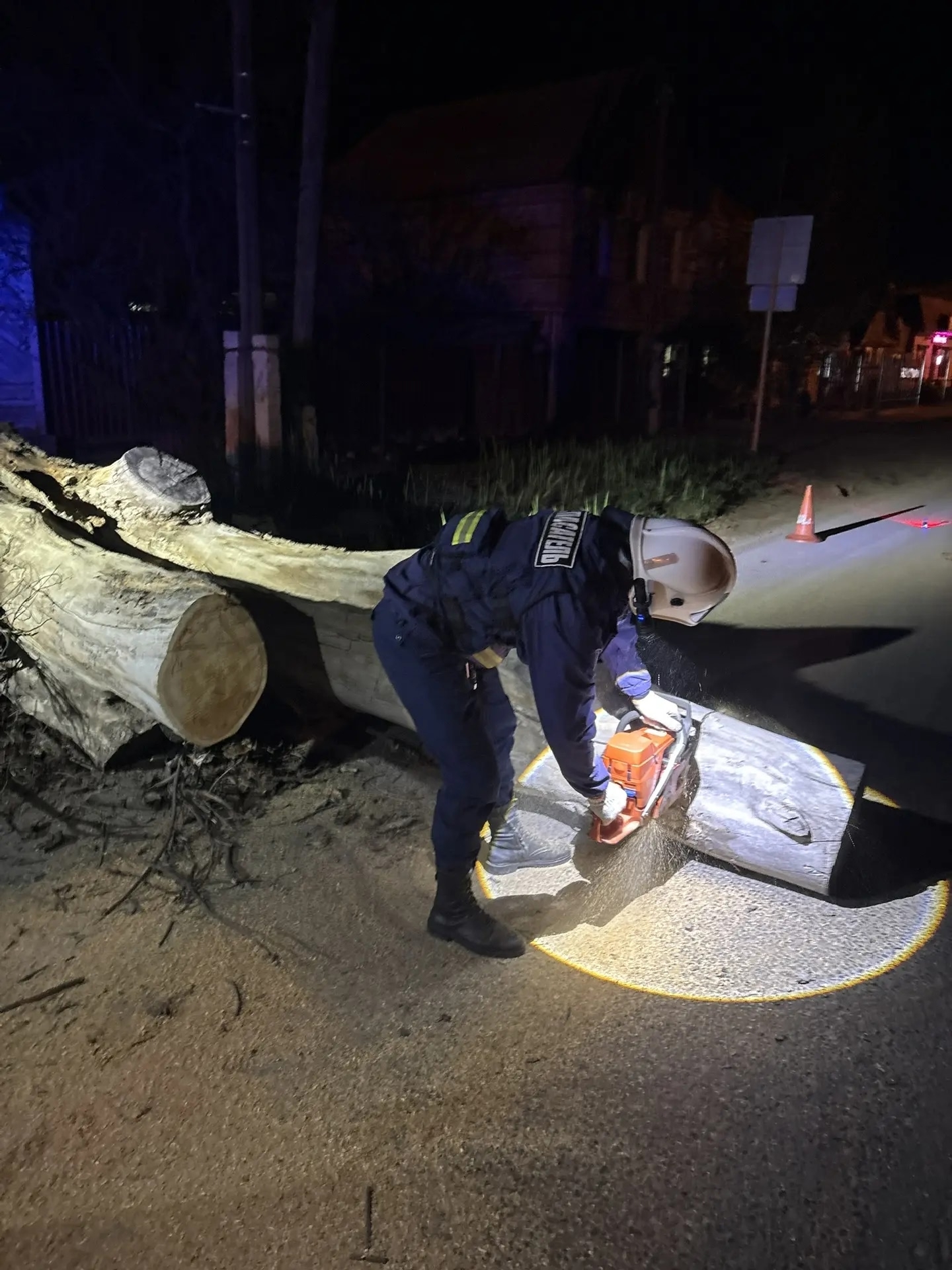 Прибыв на вызов, специалисты первым делом оградили опасную зону. С помощью спецтехники и бензопил они расчистили проезжую часть от веток и бревен. В настоящее время движение на улице Краснопитерской полностью восстановлено, угроза для водителей устранена.