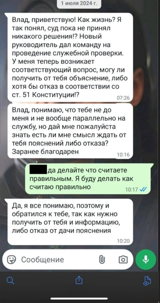 Руководитель астраханского ведомства вместо того, чтобы уволить сотрудника по его рапорту, издал приказ о проведении двух служебных проверок и вынесению дисциплинарных взысканий: выговор и строгий выговор. Руководство попыталось создать правовые основания для увольнения не по пенсии, а «по статье», выставив сотрудника с волчьим билетом. Прибегнули к стандартной схеме. Через начальника отделения собственной безопасности и начальника кадров ведомства были организованы две служебные проверки, от начала и до конца сфабрикованные: мы это смело можем говорить, так как есть решение суда). Одновременно с этим начальник ОСБ в сговоре с начальником отдела кадров, находясь на постоянной связи с нашим героем, пытались убедить последнего переписать рапорт новой датой, что автоматически означало отмену юридической силы рапорта, написанного ранее и как следствие — длительные прогулы.