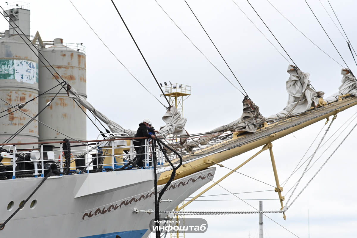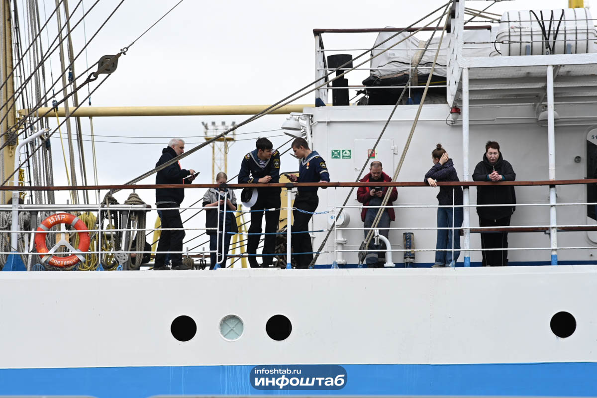 Судно, надо сказать, нечастный гость в этом регионе. А значит, у местных жителей и гостей масштабного мероприятия появляется редкая возможность побывать на паруснике.