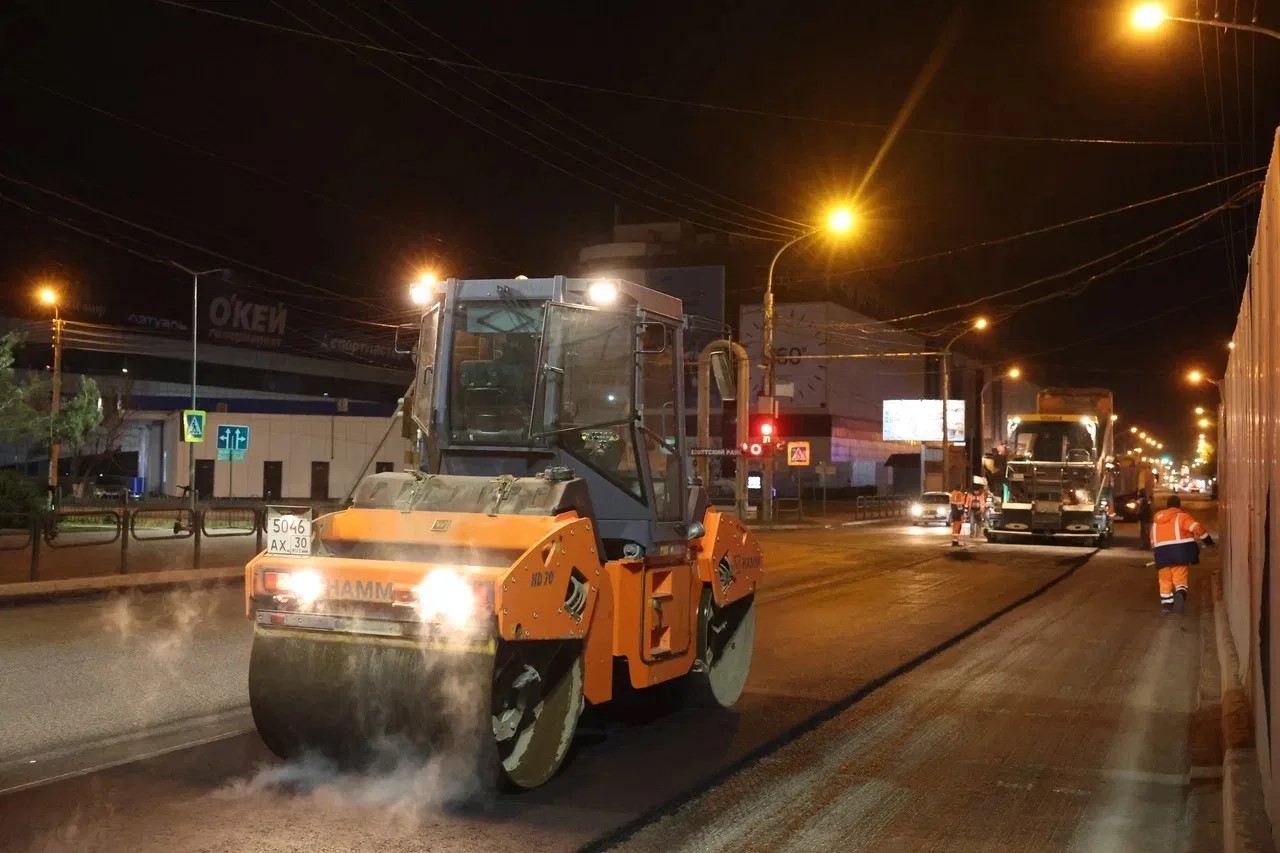 Один из видов работ – обновление дорожного покрытия по всей протяженности этой улицы. А это – свыше 3,6 километров. Дорожники уложили уже свыше километра выравнивающего слоя. Через неделю планируется приступить к замене бордюров. Работы ведутся исключительно в ночное время.