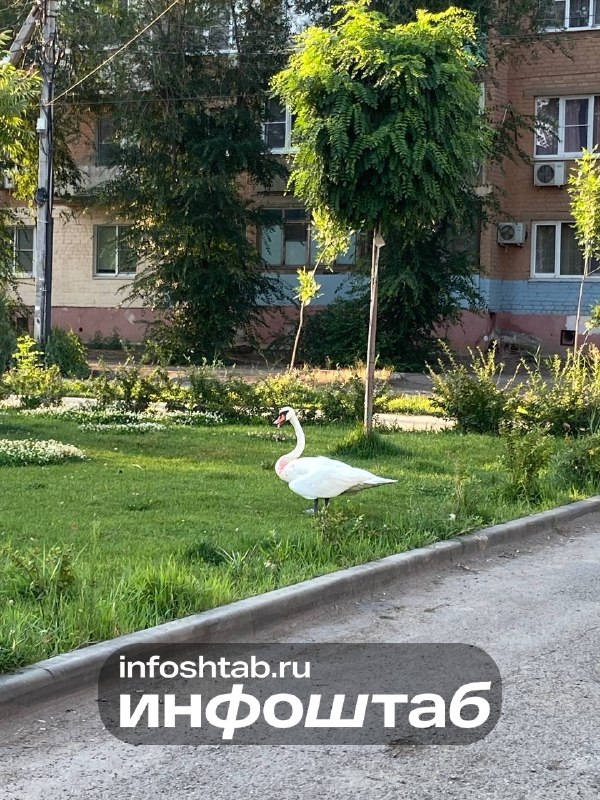 Лебедь, гуляющий по улице, был замечен в Астрахани возле ночного клуба «Монако». И этой гордой птице явно требуется помощь.