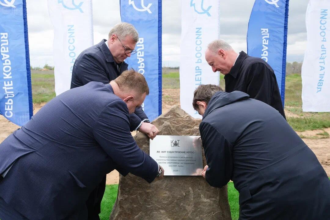 Плюс одно предприятие в Астраханской области. Речь идет о заводе по производству судовых и промышленных двигателей. Торжественная церемония закладки первого камня в честь его строительства прошла 15 апреля в Наримановском районе. В ней приняли участие помощник Президента РФ, председатель Морской коллегии РФ Николай Патрушев, советник Президента РФ Игорь Левитин, полномочный представитель президента РФ в ЮФО Владимир Устинов и губернатор региона Игорь Бабушкин.