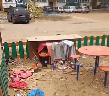 Речь идет о детской площадке во дворе одной из многоэтажек города Нариманова. Рядом с малыми архитектурными формами, как сообщает телеграм-канал «Наримановские новости», обустроены будки для бродячих животных. Местные жители подкармливают своих дворовых питомцев. Вокруг – мусор, пищевые отходы, какие-то тряпки. И это, естественно, вызывает недовольство у ряда их соседей.