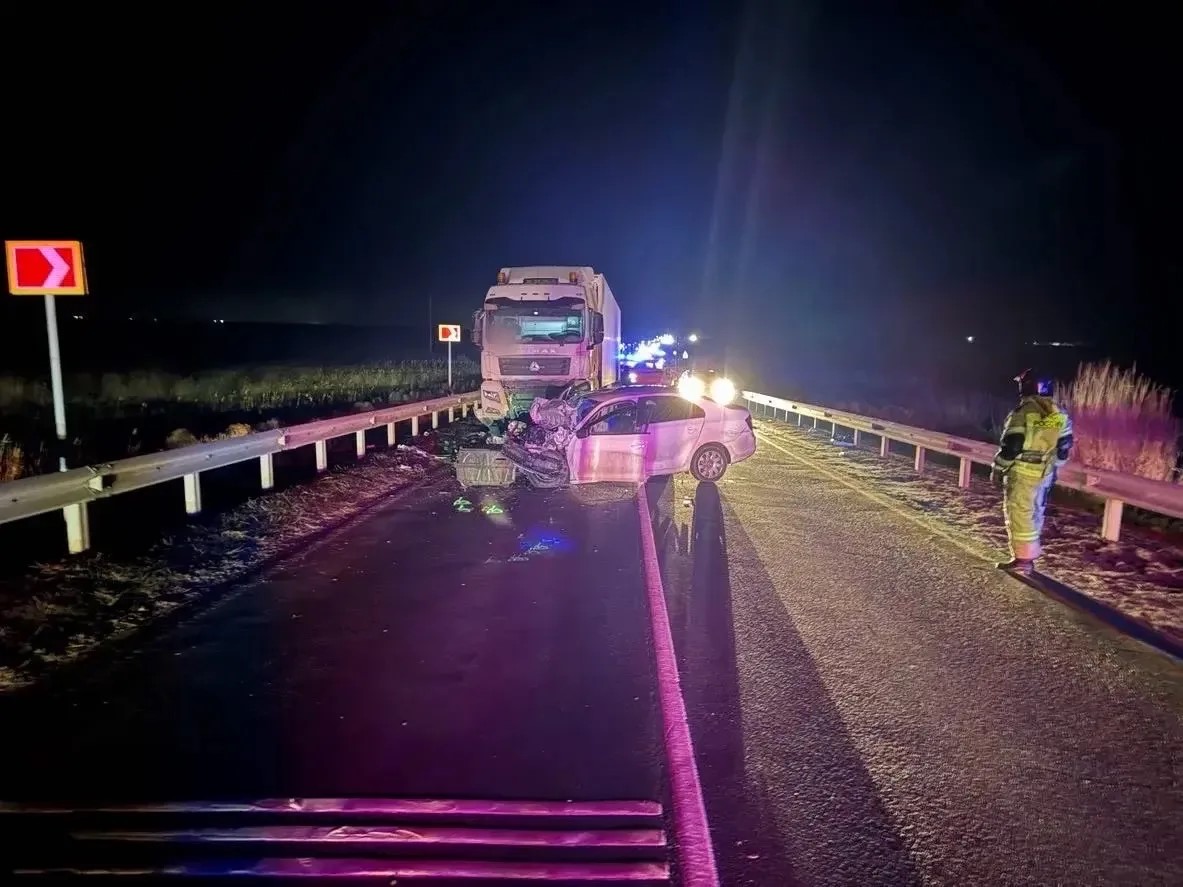 Авария произошла 17 февраля в 18:52 на 1244-м километре автомобильной дороги Р-22 «Каспий2. Это Енотаевский район Астраханской области. 30-летняя женщина, управляя автомобилем «Шкода», выехала на встречную полосу движения и врезалась в грузовик «Ситрак», за рулем которого находился 54-летний водитель.