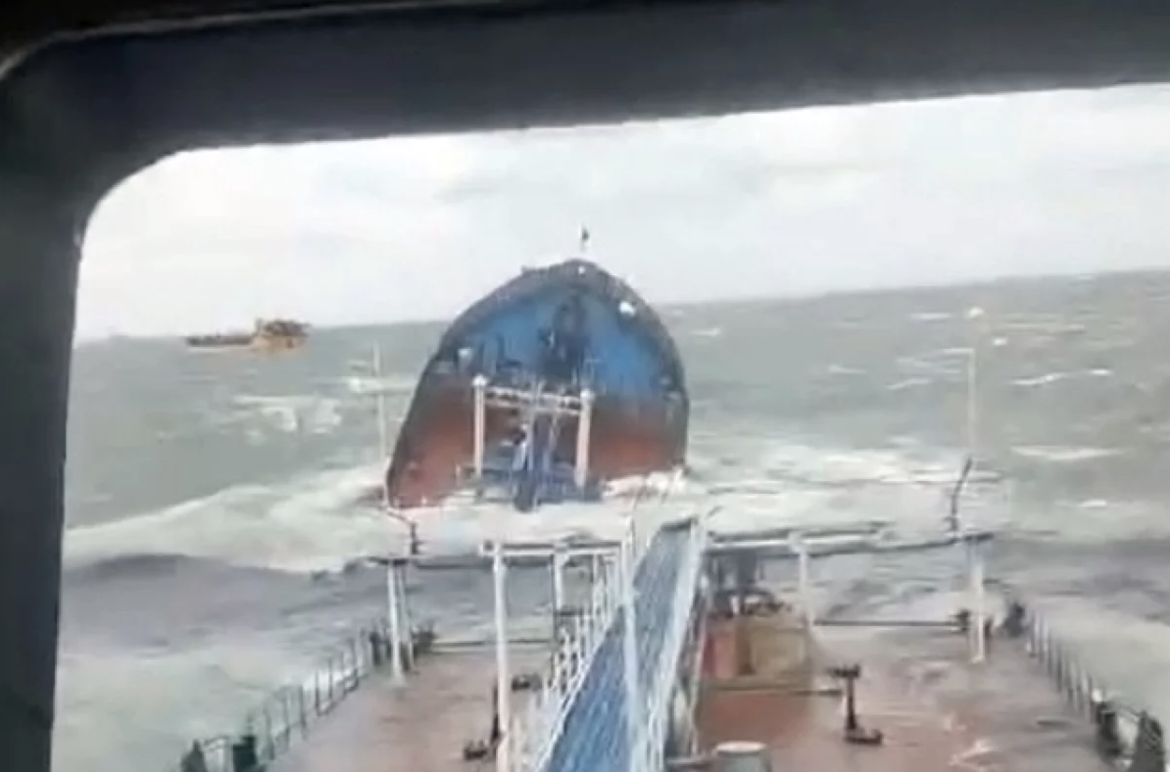 Второй танкер получил повреждения в виде разрыва носовой части на расстоянии 8 км. от берега. Экипаж корабля находился в кормовой части, их спасли и доставили на берег