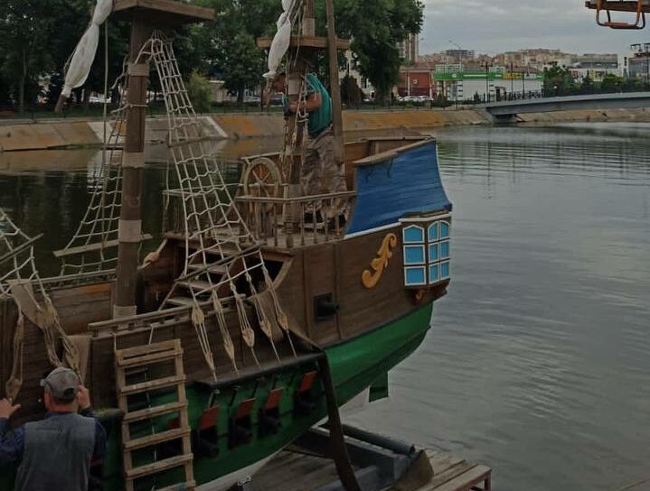 А начиналось все в 2018 году. Астрахань отмечала свое 460-летие. Центральная часть города украшалась с особенной тщательностью. Были установлены несколько новых арт-объектов. Один из них – деревянный макет легендарного фрегата в масштабе 1:4, длиной в 6 м. и шириной в 4,5 м. Новая достопримечательность выглядела как настоящее судно. И она стала интересной фишкой общественного пространства.