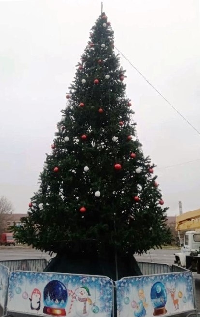 Она снова в строю, новогодняя Елка, украшающая главную площадь Ахтубинска Астраханской области. Более того, праздничное деревце сменило свой наряд.