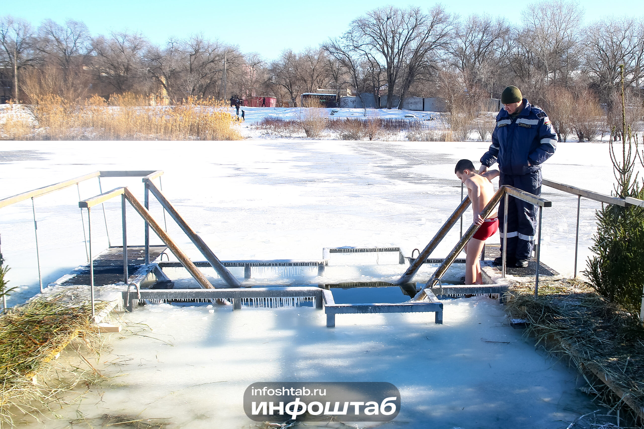 Купания в Астрахани начались после праздничного богослужения в 23:00 18 января и продолжались весь день 19 января. На одной из иорданей побывал фотокорреспондент Инфоштаба. Предлагаем посмотреть фоторепортаж.