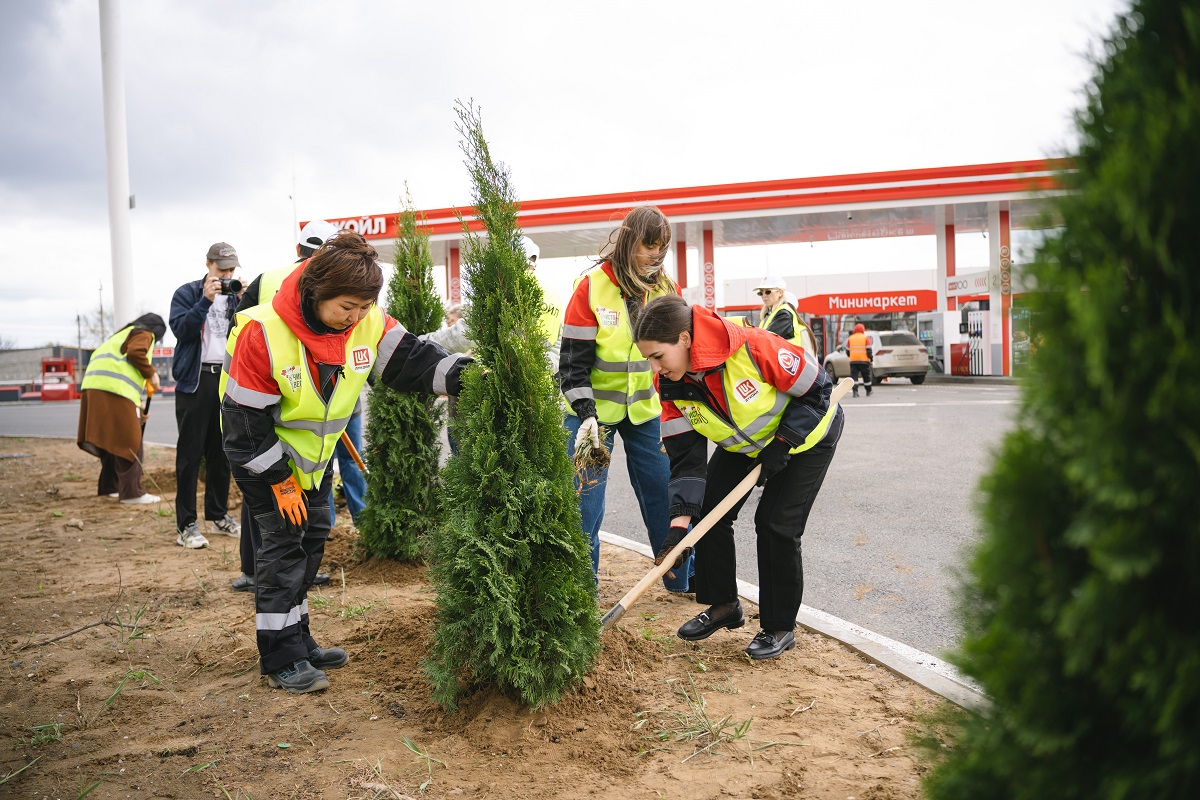 Вот так с подачи ЛУКОЙЛа пустующая ранее территория между АЗС и шоссе начала превращаться в зеленую аллею.