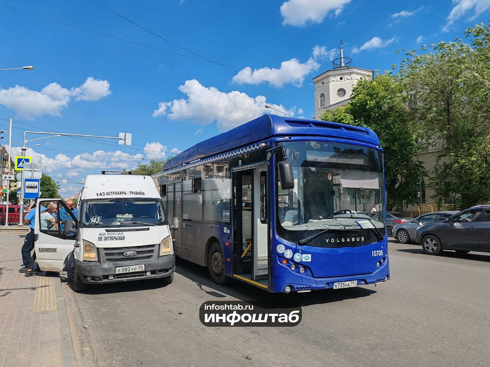 ДТП с участием автобуса и маршрутки произошло 25 июня в Астрахани на пересечении улиц Богдана Хмельницкого и Боевой. Но в эту «аварию» вклинилось и третье транспортное средство, создавшее помеху в движении других автомобилей.