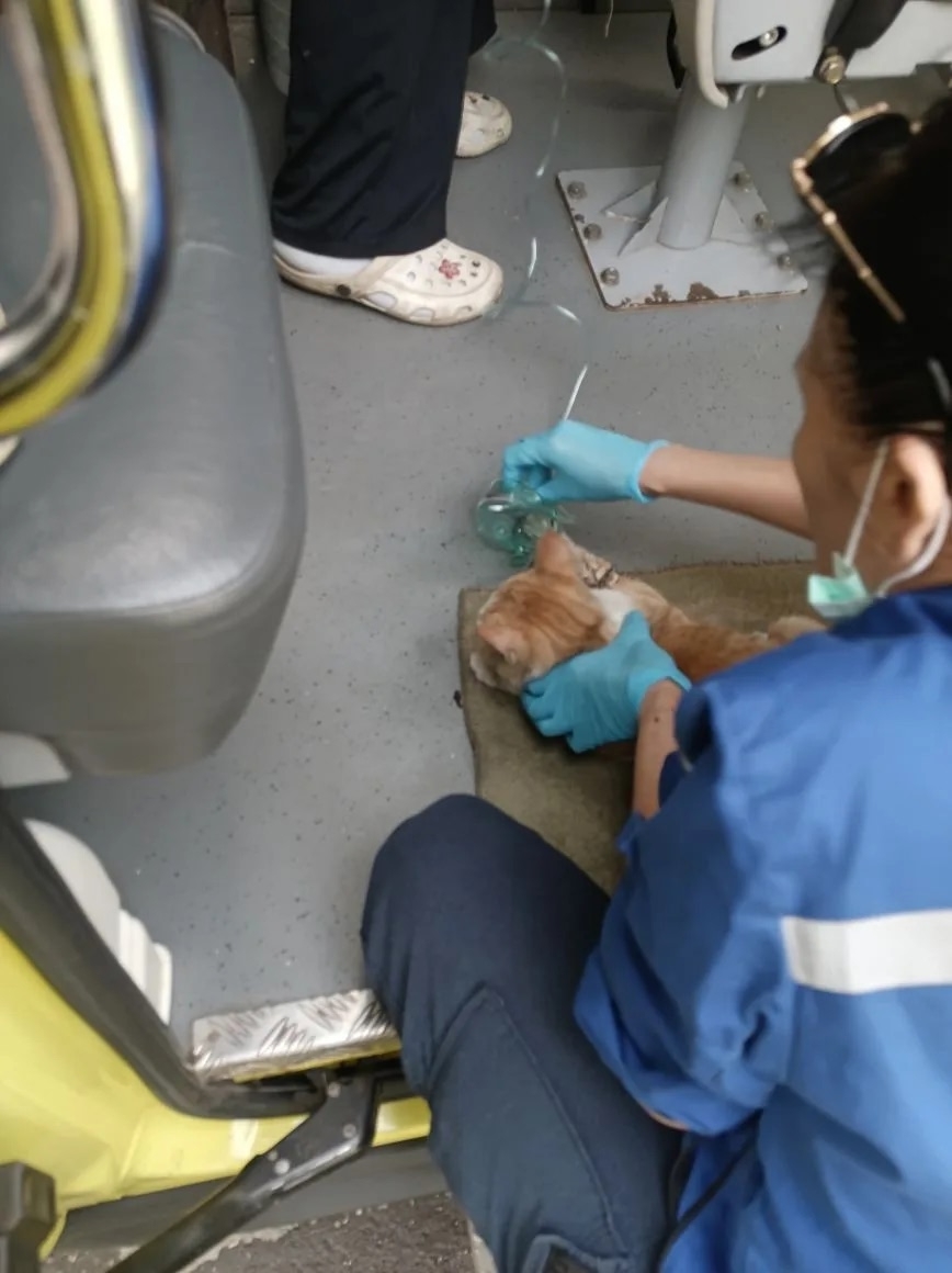 В Астрахани врачи скорой помощи провели трогательную операцию по спасению кота, который едва не погиб в дыму на Приволжском затоне.