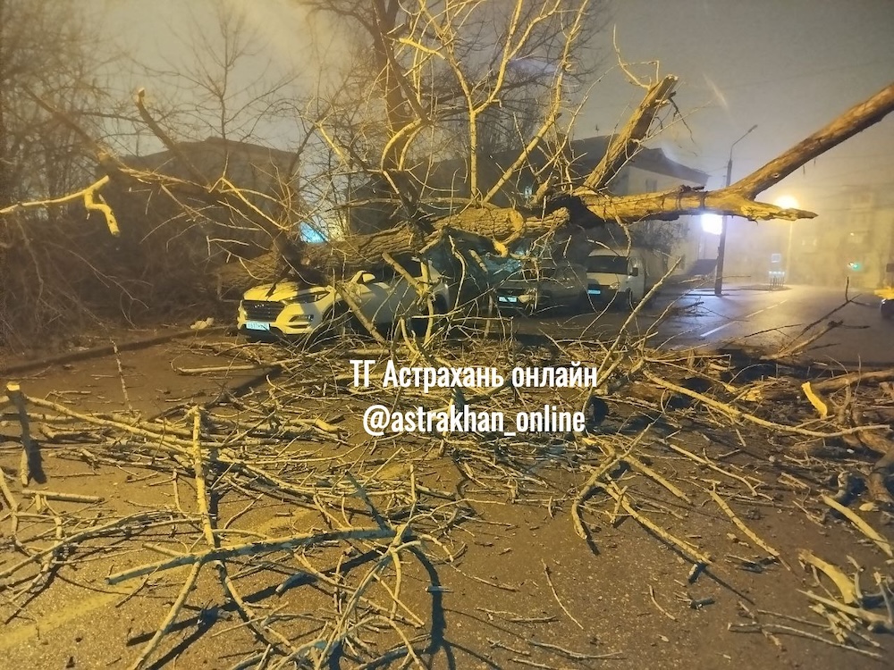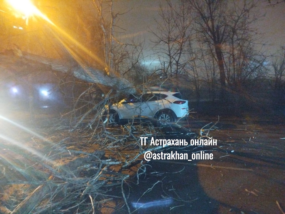 Там массивное дерево рухнуло поперек дороги, превратив участок улицы в зону лесоповала. В ловушке оказался как минимум один легковой автомобиль, на который пришлась основная масса упавшего ствола. Фотографии из группы «Астрахань онлайн» наглядно демонстрируют масштаб завалов: ветки разбросаны в радиусе нескольких метров, полностью блокируя одну из полос движения.