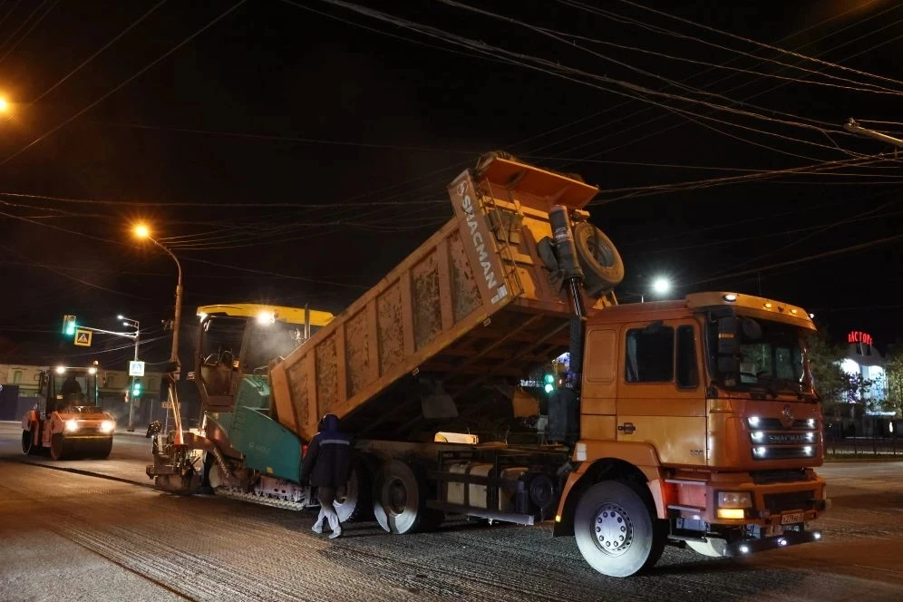 В качестве примера — минувшей ночью специалисты продолжили фрезеровку на улице Боевой. Днем ранее на этом участке, от площади Свободы в сторону улицы Ахшарумова, уже был уложен первый слой асфальта.
