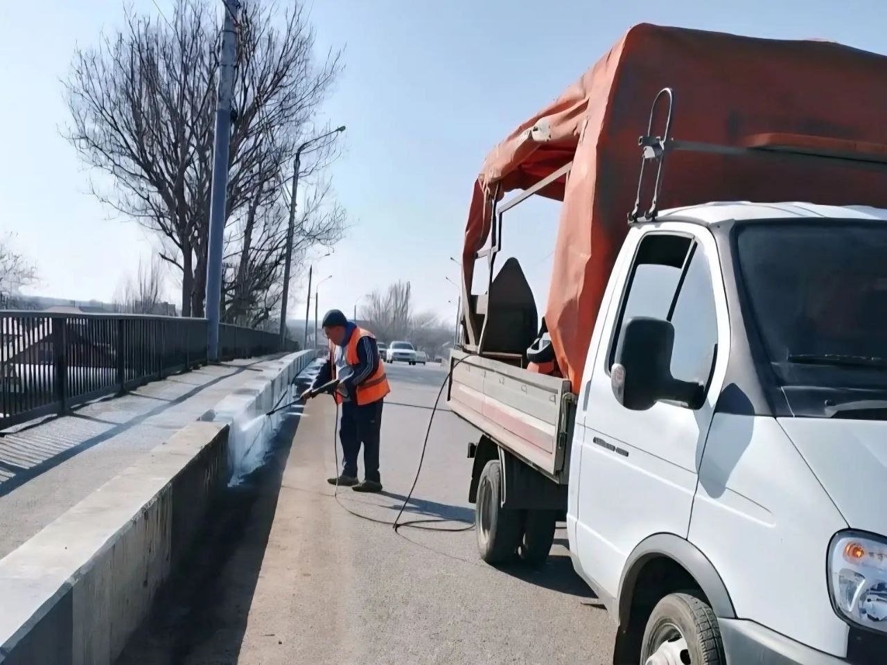 Коммунальные службы также продолжают работы на мостах. На Новом мосту завершается покраска отбойных ограждений после их предварительной очистки. Одновременно началась помывка и зачистка моста в створе улицы Боевой.