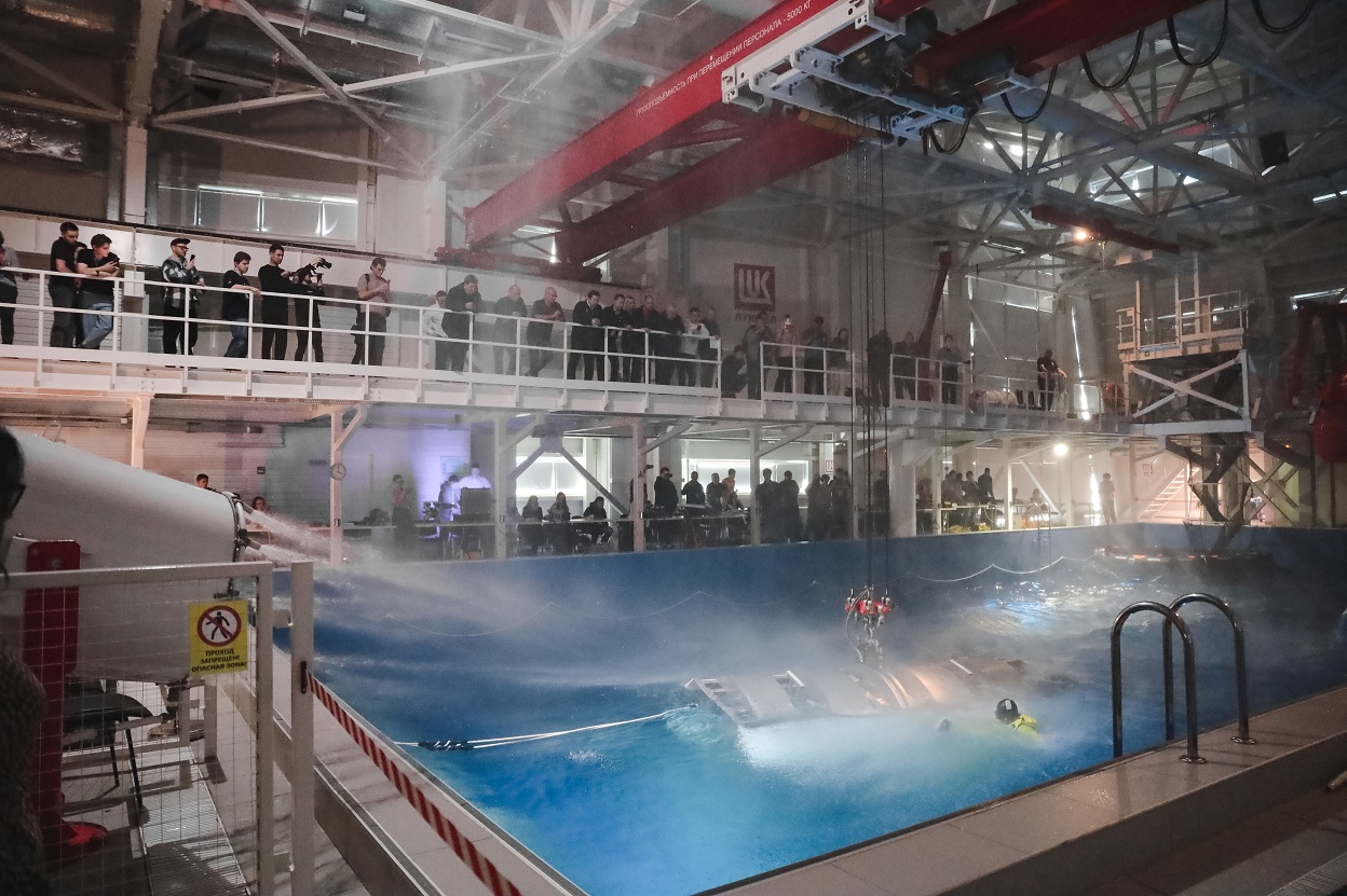 Центр представляет собой комплекс с объектами-тренажерами. Например, полигон, на котором создается имитация пожара и отрабатывается техника тушения. Есть бассейн, в котором «ученики» получают навыки аварийного приводнения и спасения на воде, в том числе в штормовых условиях. Это тот самый «вертолет», который падает в бассейн, переворачивается в воде. Задача людей – выбраться из салона и доплыть до спасательного плота. При этом с помощью технических средств воссоздаются различные погодные катаклизмы. В том числе, молнии, ураган, высокая волна.