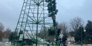 В Астрахани приступили к установке главной ёлки города. В этот раз, по просьбам горожан, 17-метровая светодиодная красавица получила, ск