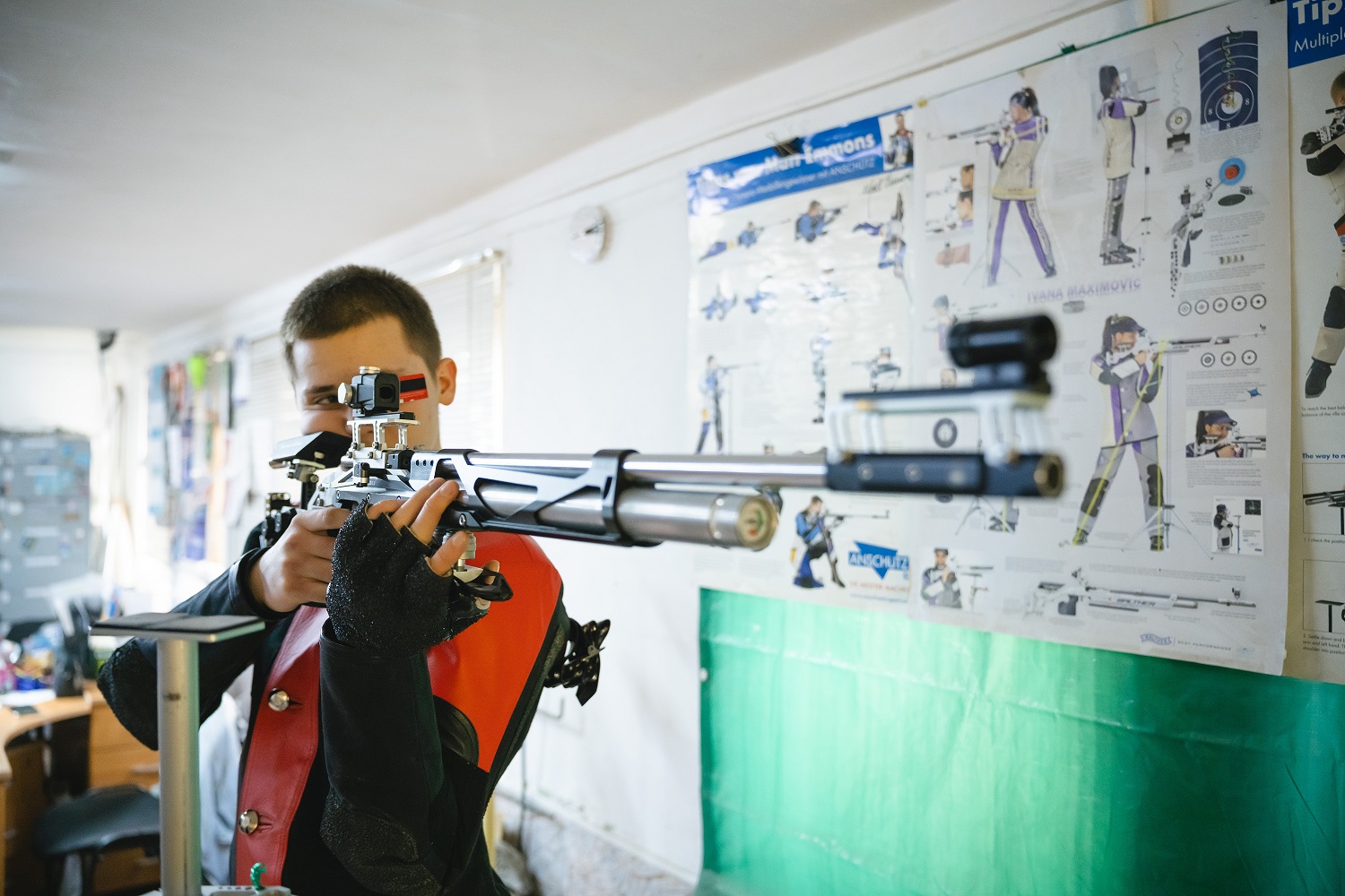 «Спортивная винтовка весит от 4,5 до 5,5 килограммов. Пистолет весит от 800 граммов до 1,2 килограмма. Поэтому маленькие дети не совсем еще могут выдержать. Да и костно-мышечный аппарат еще не сформировался. К тому же помимо подготовки к соревнованиям мы занимаемся общефизической подготовкой. Также в стрельбе особенно нужно сконцентрироваться. Допустим, за тренировку с винтовкой у нас длится 15 минут подготовка, 15 минут пробный и час 15 минут – на 60 выстрелов. И все это время, один час 45 минут, мы находимся на одном месте», — поясняет мастер спорта международного класса по пулевой стрельбе Александр Степыгин.