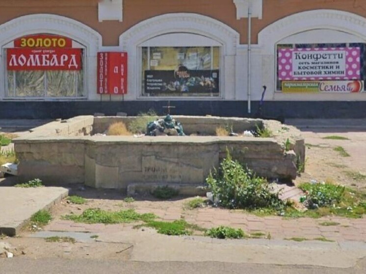 Фонтан украшал пятачок возле рынка еще с советских времен. Но вот уже многие годы, как он не работает. Фонтанная чаша полуразрушена. И в ней частенько скапливается мусор.